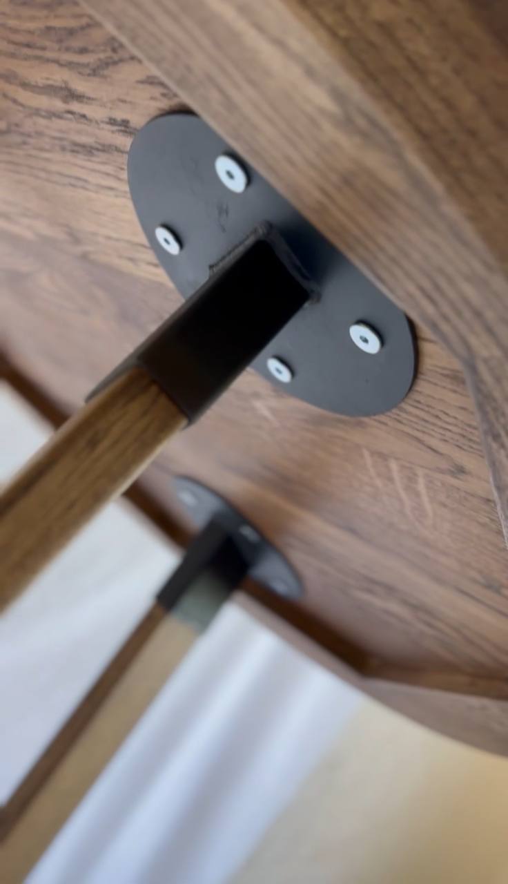 Современный круглый обеденный стол из массива дуба. Круглая форма гармонично объединяет в пространстве всех сидящих за столом. Плавные изгибы подчеркивают его компактные размеры, легкость и элегантность.Стол изготовлен полностью из массива дуба. Пропитан натуральным маслом высокого качества Saicos.. Крепления трех ног столешницы через металлический фланец черного цвета.