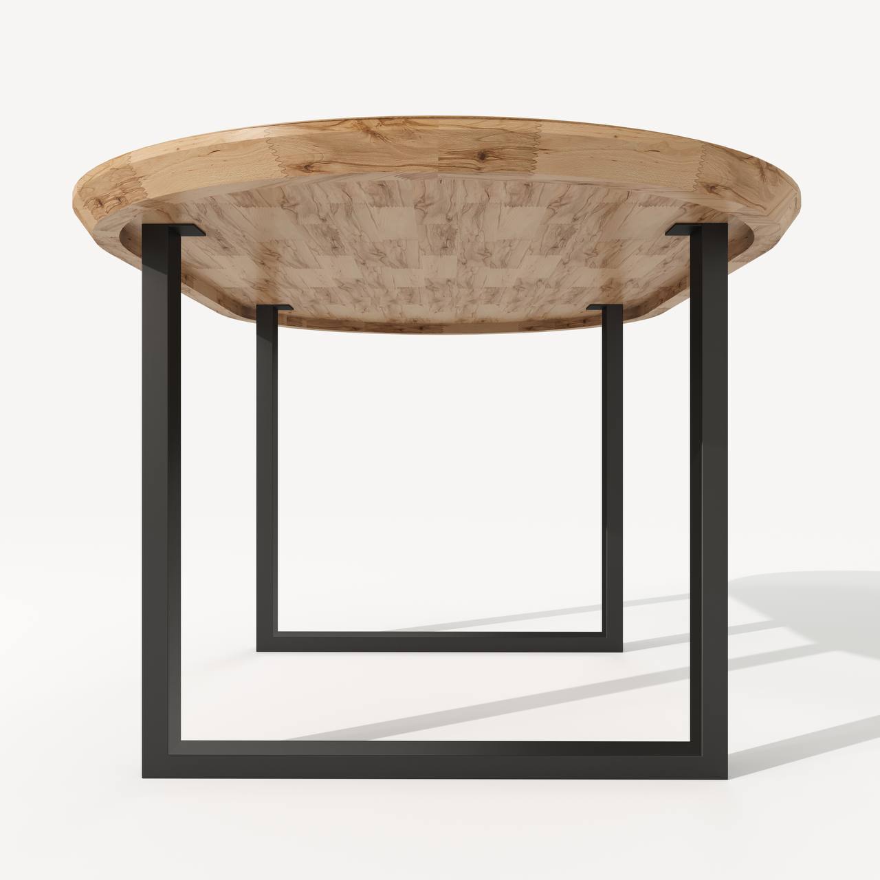 Да, мы можем изготовить не только классические прямоугольные столы, но и круглые или овальные столешницы из массива дуба. Такая форма особенно удобна для кухонь и гостиных, где важна эргономика и компактность.